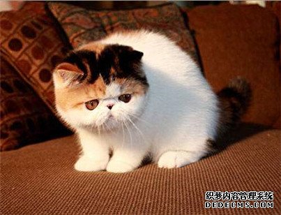 三色CALICO:白色帶黑色和紅色的斑塊。貓的足、腿、身體下側(cè)面和鼻口是白色的話更好。如果白色超過這個范圍給予相稱的扣分。臉上由鮮明毛色形成反轉(zhuǎn)的“V”字。眼色:艷麗的紅銅色、藍(lán)色或者金銀眼。金銀眼則一眼為藍(lán)色一眼為紅銅色,并且有同樣深的色度。