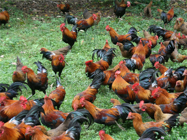 (2)飼養(yǎng)粗放:其抗病能力強(qiáng),病害少,對(duì)1月齡以上的原雞即可散放在田邊田角,讓其自由覓食。對(duì)外界環(huán)境要求不高,各種糧食類作物均可飼喂,并可配以青綠植物。