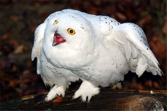 御敵:雖然雪鸮的天敵很少,但成年雪鸮也在時刻保持警戒,對任何可能對它們或它們的子女造成威脅的事物都做好了防御準備。雪鸮在繁殖期外是安靜甚至膽怯,但是進入繁殖期后,它們對入侵者就會很不客氣。在繁殖期間,它們常常會面臨北極狐、賊鷗以及狗、狼和其他鳥類掠食者,而人類則是它們最危險的天敵。雄雪鸮的地盤行為包括發出吠聲、鼓喉、揚尾并弓下身,并準備俯沖。它們非常小心的看護蛋,從來不會讓蛋無人看管。雄雪鸮會在產卵地附近守衛,而雌雪鸮會孵蛋和照顧雛鳥。雄鳥和雌鳥都會襲擊敵方,采用俯沖或轉移注意力的方式將敵方趕走以保護蛋。面對闖入自己地盤的其他雄雪鸮,雄性主人還會作出夸張的姿勢以驅走入侵者。它們還會與一些掠食者爭奪巖雷鳥和其他獵物,這些掠食者包括毛腳鵟、大雕鸮、金雕、游隼、海東青、賊鷗、北極鷗、短耳鸮、渡鴉、狼、北極狐和白鼬。因為雪鸮常將掠食者趕出自己的領地,將巢修筑在它們附近的雪雁等物種也從中受益。
