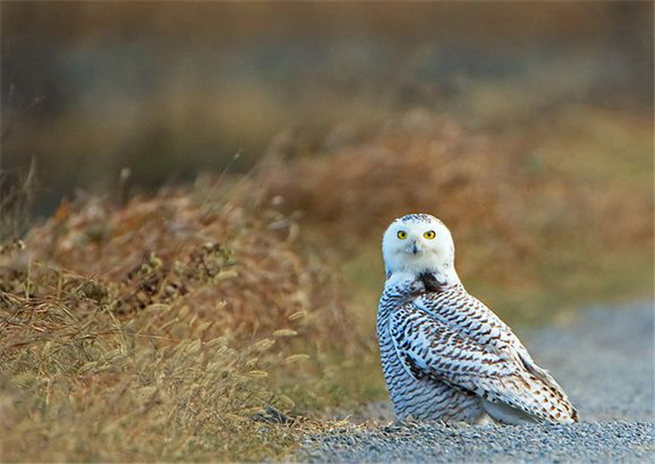 與很多鸮類不同的是,雪鸮在很多地域屬于晝行性鳥類,白天活動晚上休息,偶爾也在黃昏后捕獵。它們的飛行姿態平穩有力,俯沖力量強,而升空速度也很快。它們能進行短程貼地飛行,并會不時降落在地面或桿上停息。在天氣炎熱時,雪鸮會通過呼氣和張開翅膀來降溫。它們大部分時間都會棲息在視野開闊的地點,如籬笆、草垛、樹木、建筑物、電線桿,密切注意其他入侵者,或是伺機從獵物背后悄悄捉住它們。